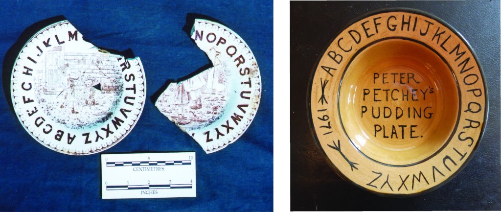 Left: Alphabet plates with children playing soldiers design from St. Peter’s Vicarage, Queenstown.