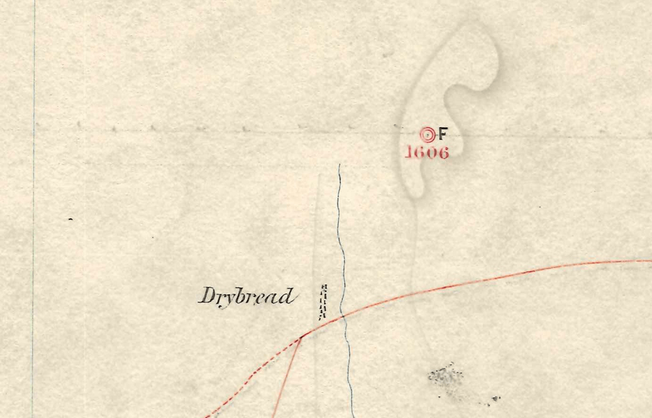 The only map to actually show the Drybread settlement was drawn in 1868, but unfortunately many details were only sketched in, meaning the town location was inaccurate. Hamilton’s drawing proved much more useful, and we were able to match up the skyline he drew with the skyline today.